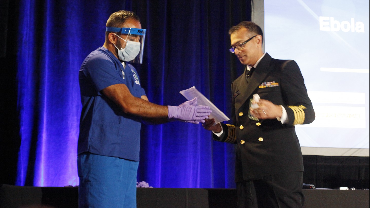 Sidhu inspected his equipment first—two pairs of gloves, a gown, mask and face shield. Then Arjun Srinivasan, MD, the associate director for health care-associated infection prevention programs at the federal Centers for Disease Control and Prevention, gave him detailed, step-by-step instructions in putting them on.