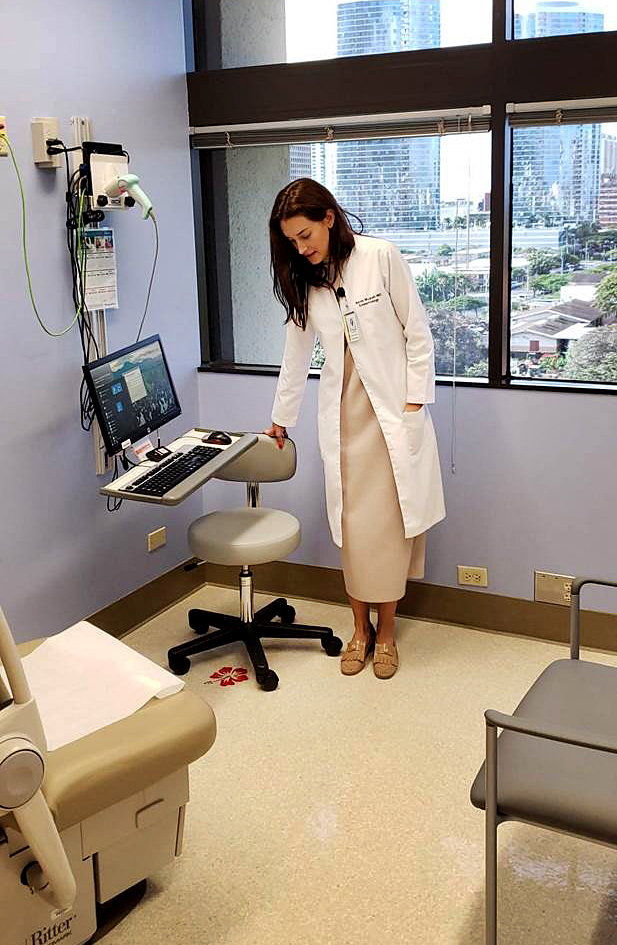 - Placing a flower-shaped decal on the floor to indicate where to place rolling chairs in exam rooms