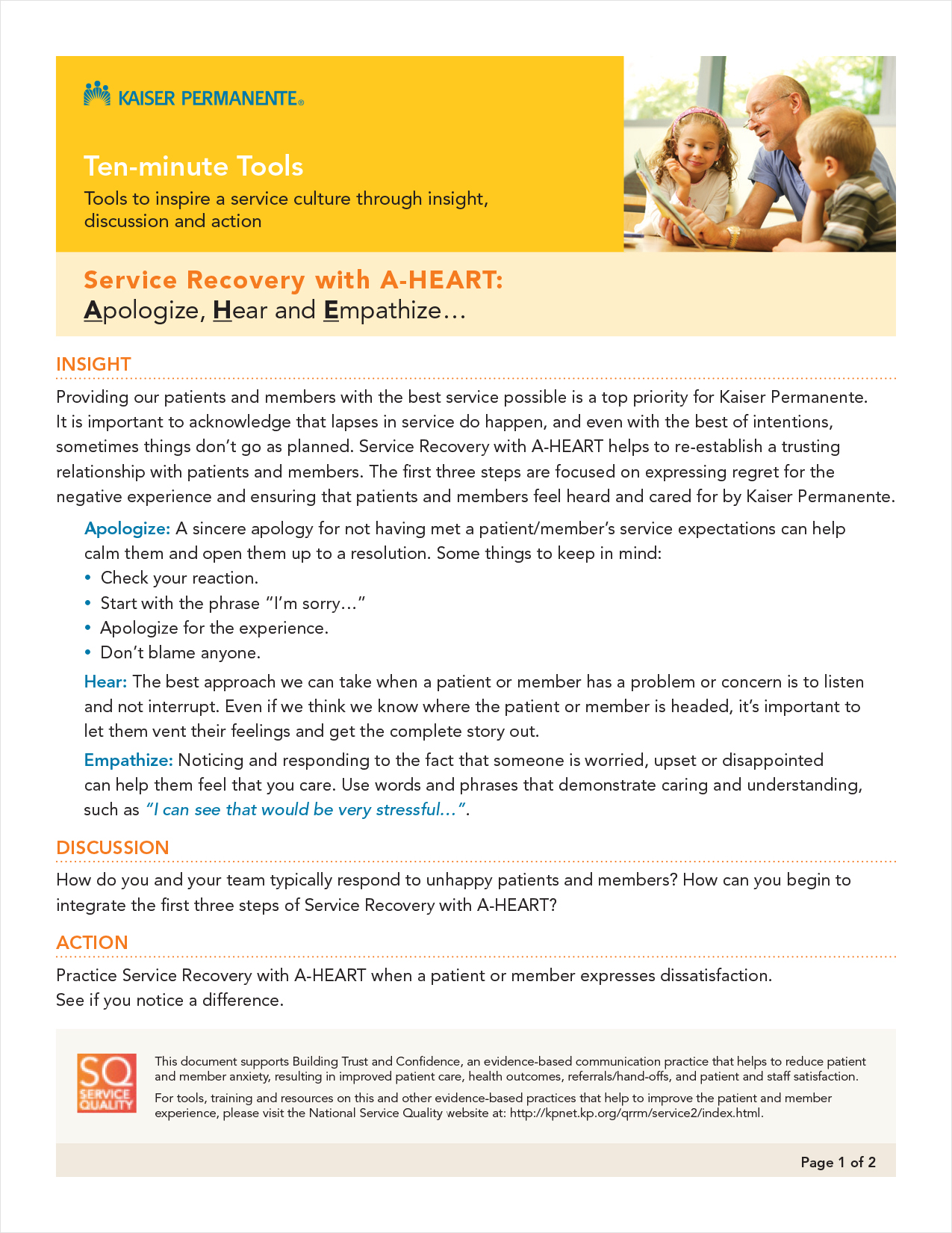 Share these simple techniques based on the A-HEART model with your team members to learn how to restore member or patient relationships if service breaks down.