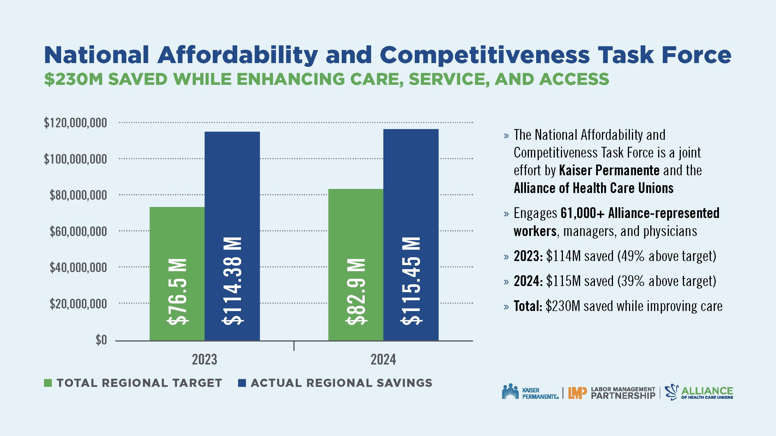 See how Alliance-represented workers, with managers and physicians, saved $230 million over two years while improving quality, service and access. Share at huddles, LMP council meetings, and other partnership gatherings. Read the details.