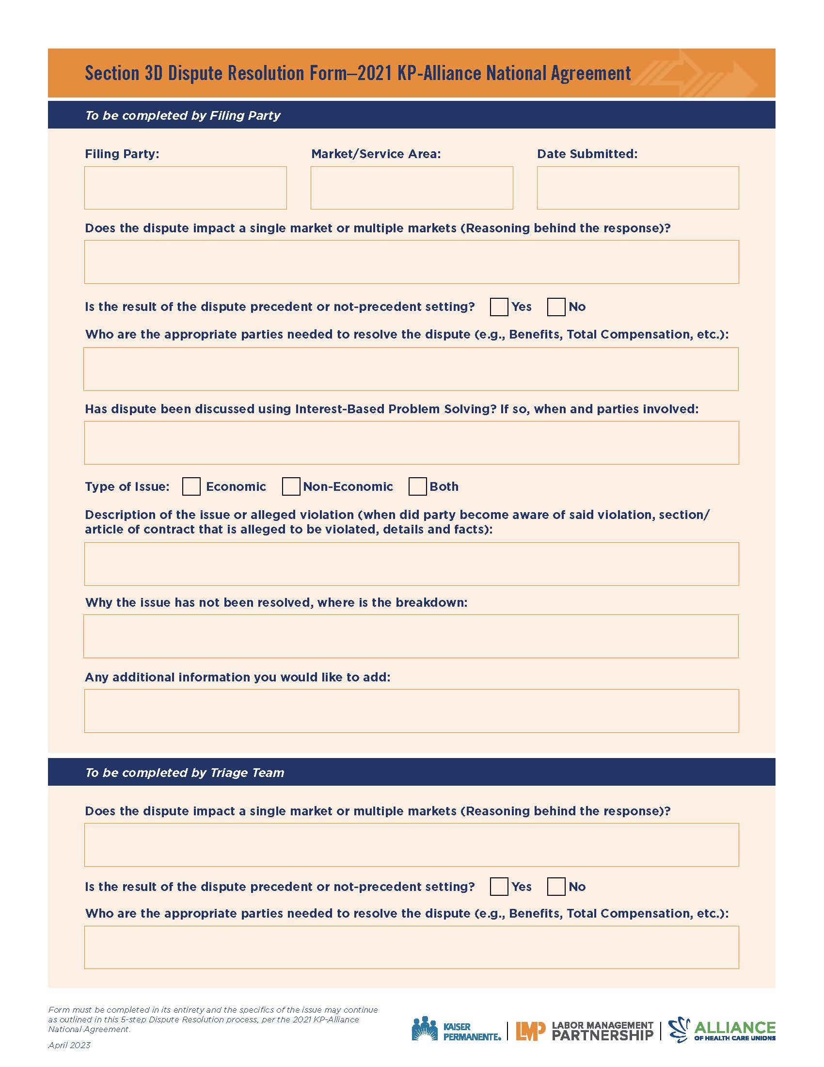 Representatives of Kaiser Permanente and the Alliance of Health Care Unions seeking resolution of a difficult partnership issue.