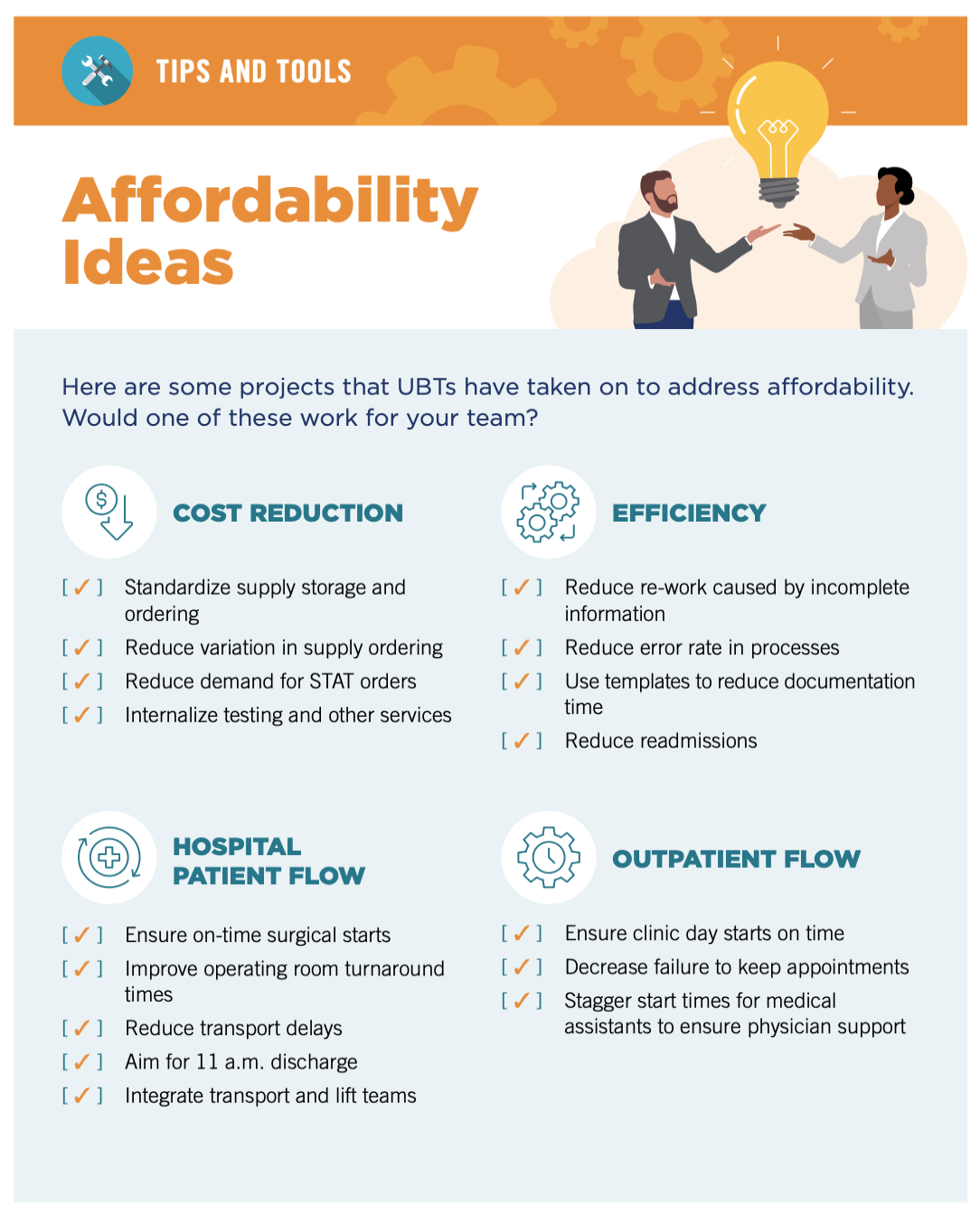 Review this list at your UBT meeting to see if your team could adapt one of these projects to improve affordability.