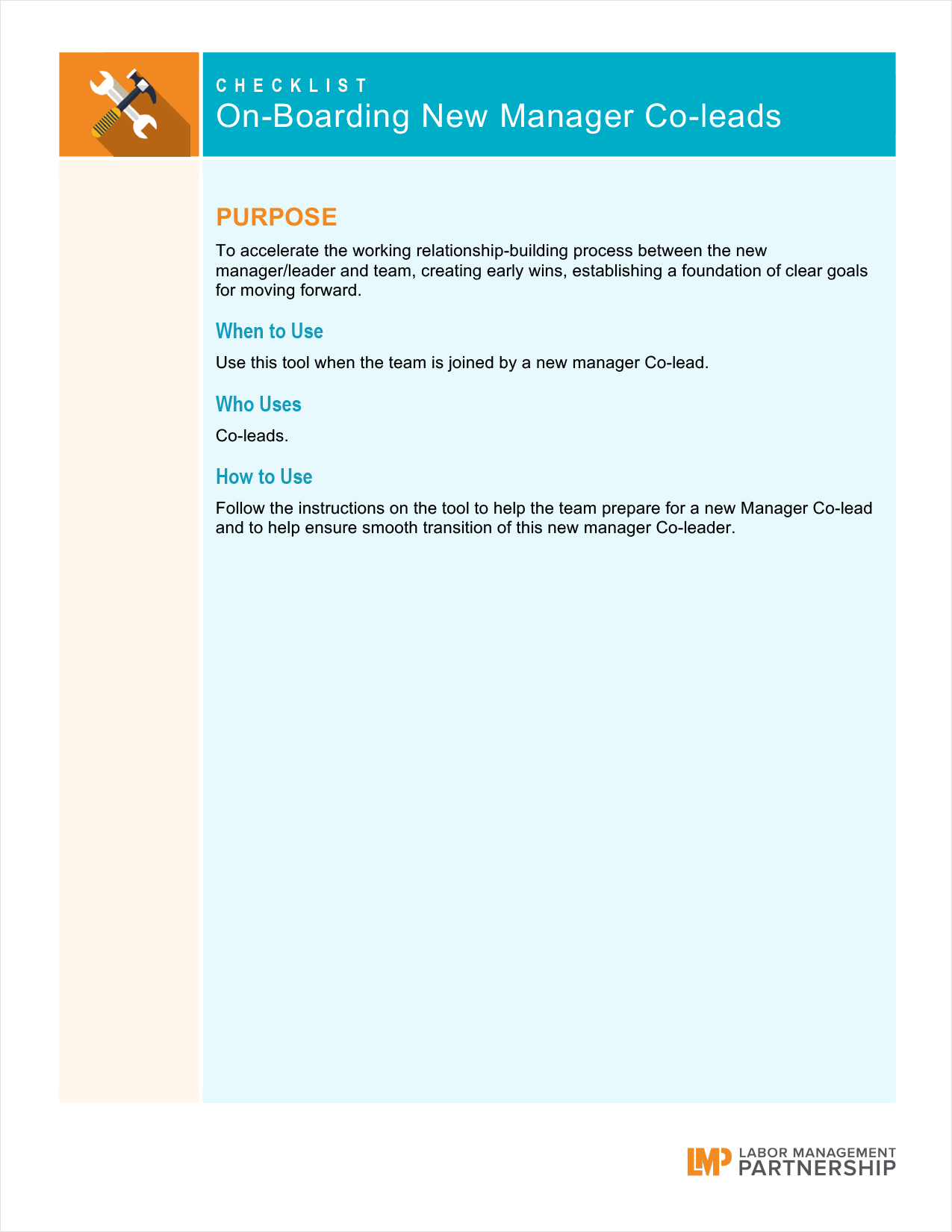 Use this tool when a new management co-lead joins the team to accelerate the process of building a working relationship.