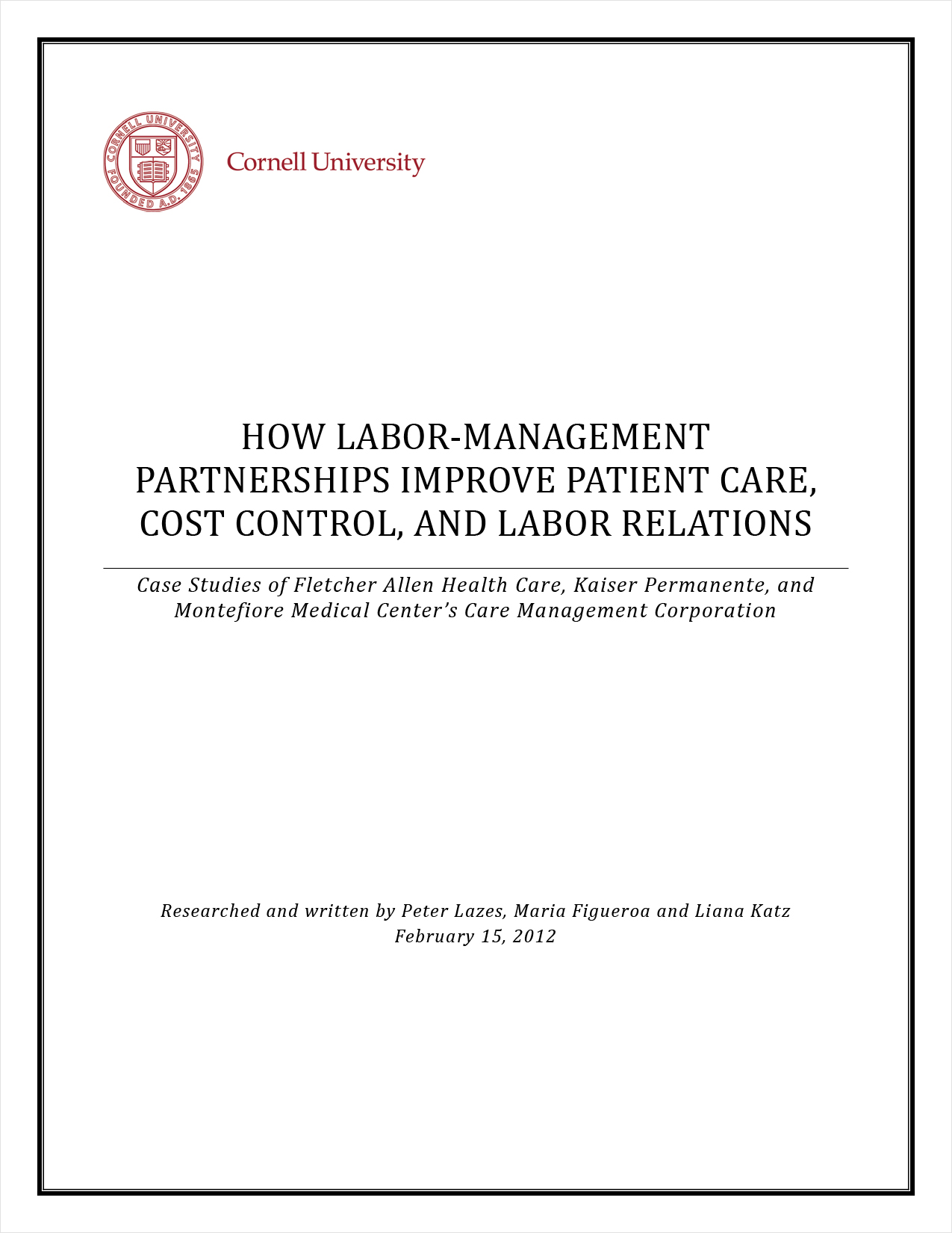 Share this Cornell study with teams, colleagues and all parties interested in new approaches to health care delivery and workplace effectiveness—and in learning about the benefits of labor-management partnerships.