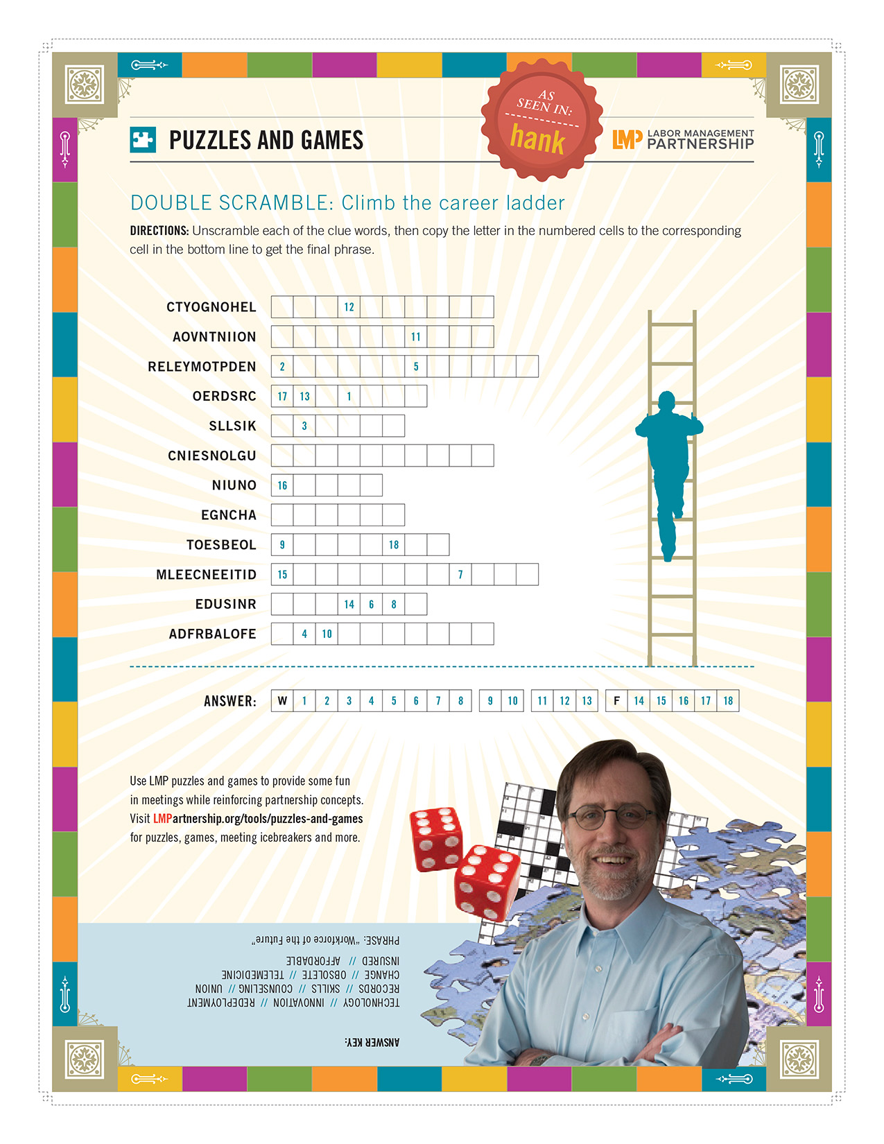 This scramble puzzle can provide meeting fun while informing employees of resources to advance their careers.