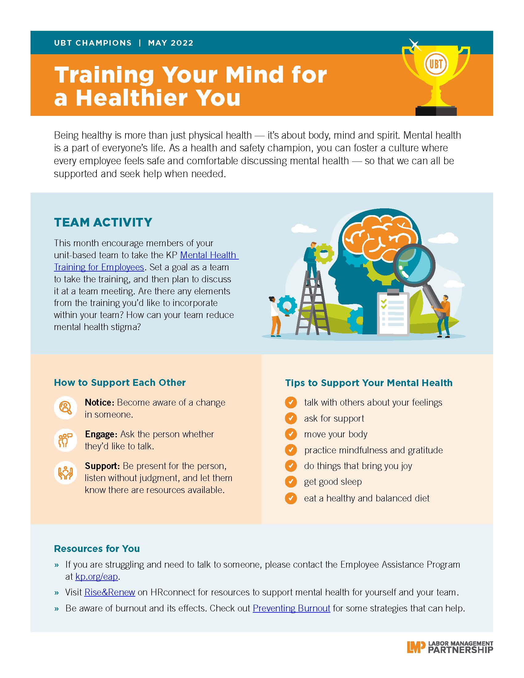 Stop the stigma of mental health and start a conversation with your team to support each other in a safe and inclusive way. Get your brain in shape by taking KP's Mental Health Training for Employees.
