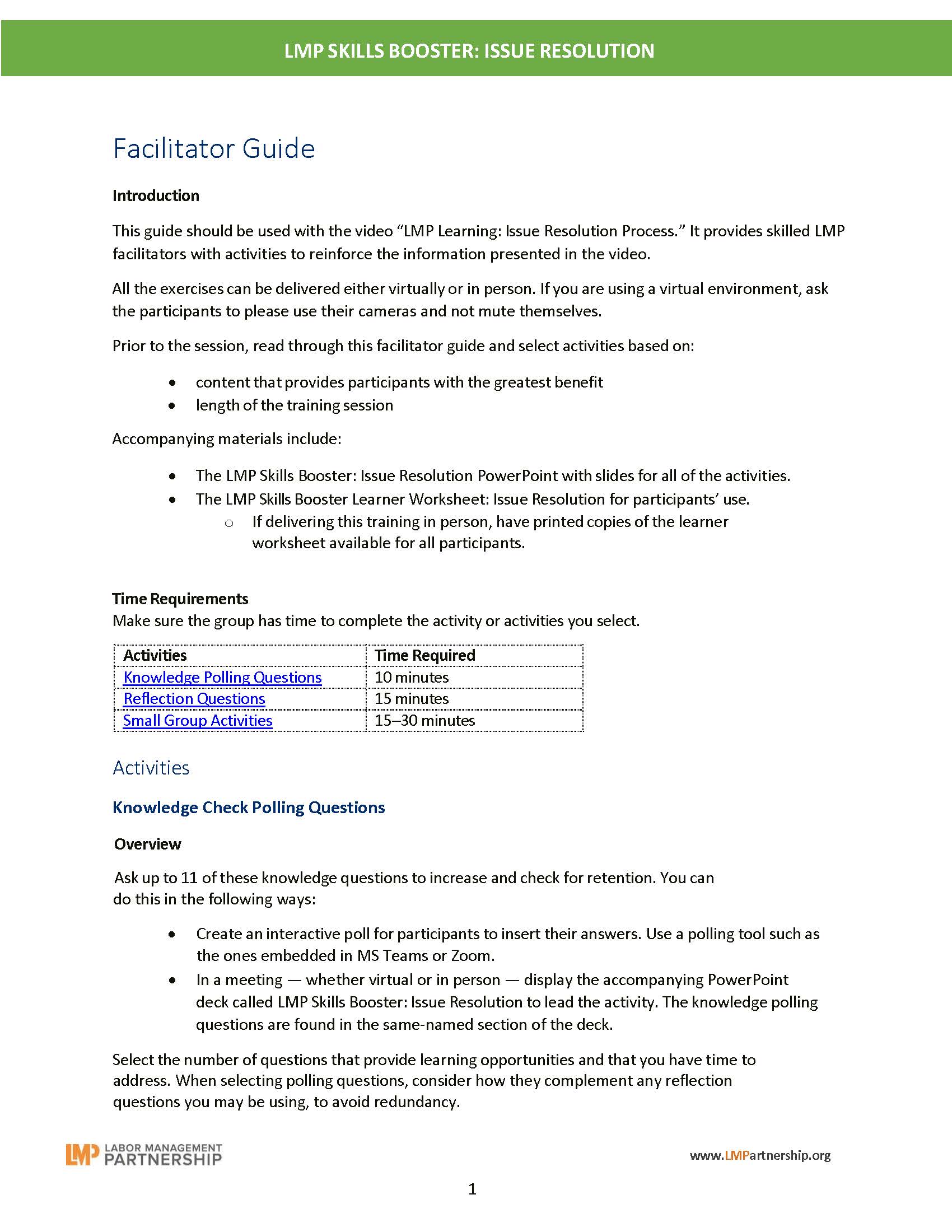 Use this facilitator guide together with related booster resources, (including a video, PowerPoint and learner worksheet) as a package of complementary materials.
