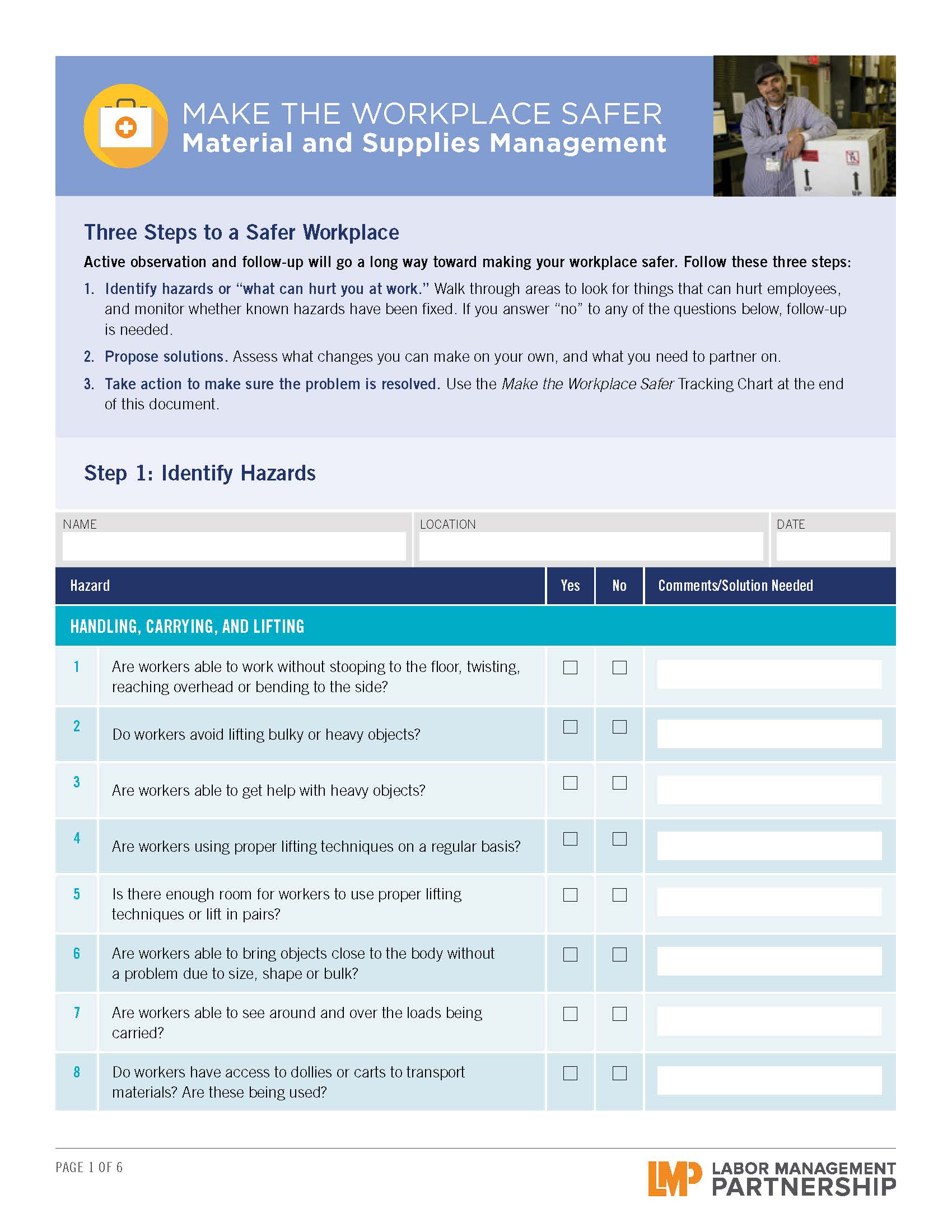 This checklist of 32 potential workplace hazards can help safety leaders and supply team members conduct walk-throughs, identify safety risks, propose solutions and resolve problems.