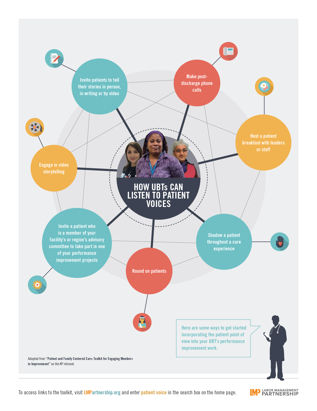 Post this infographic, with ideas for how your team can bring the patient's voice into your performance improvement efforts, on bulletin boards, in break rooms and other staff areas.