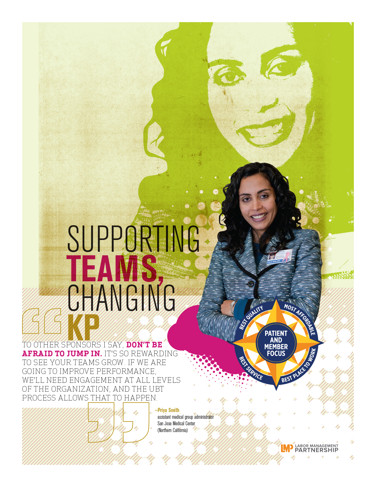 This poster features UBT sponsorship advice from Priya Smith, a sponsor in Kaiser Permanente's Northern California region. Post on bulletin boards, in break rooms and other staff areas.