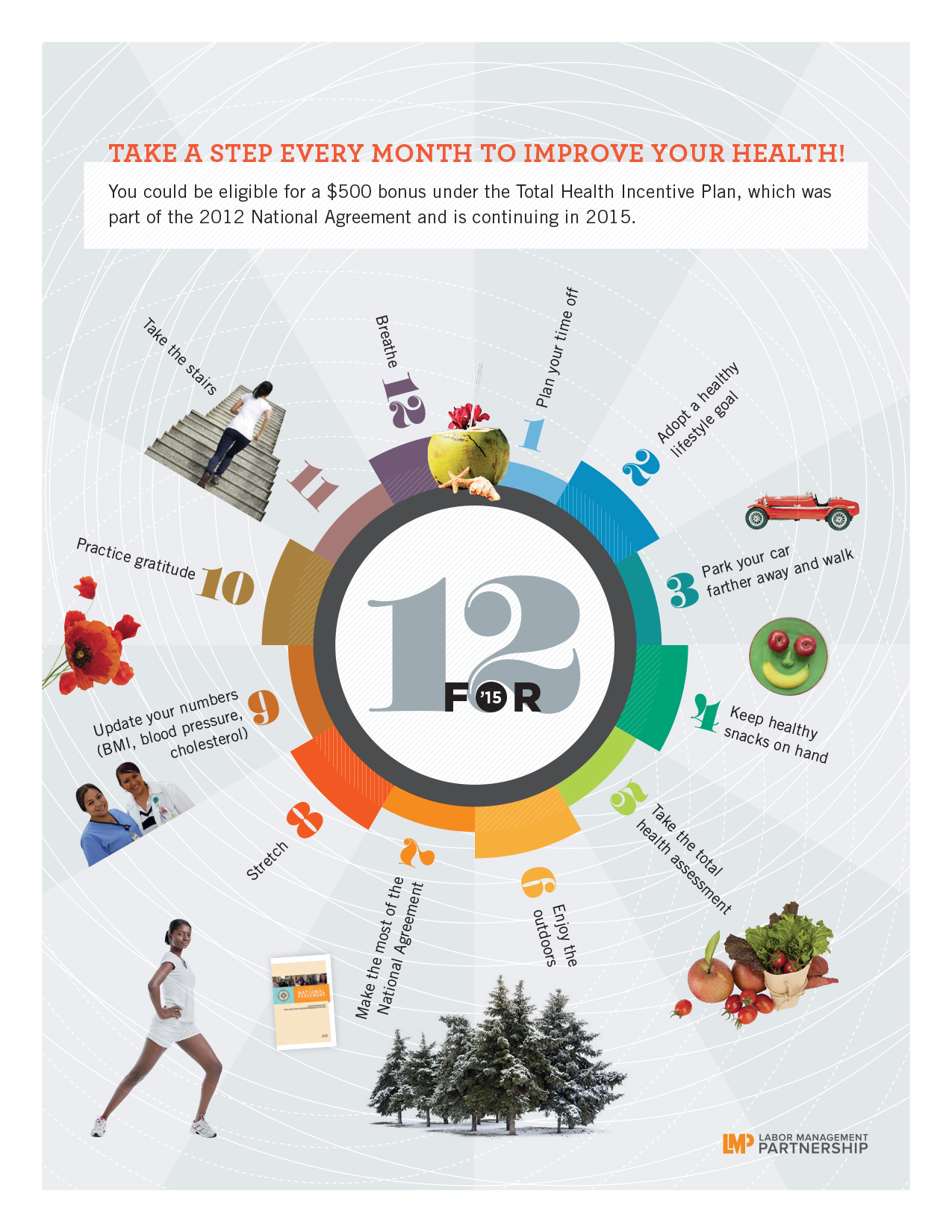 This poster has an idea for every month on how you can improve your health. Post on bulletin boards, in break rooms and other staff areas.