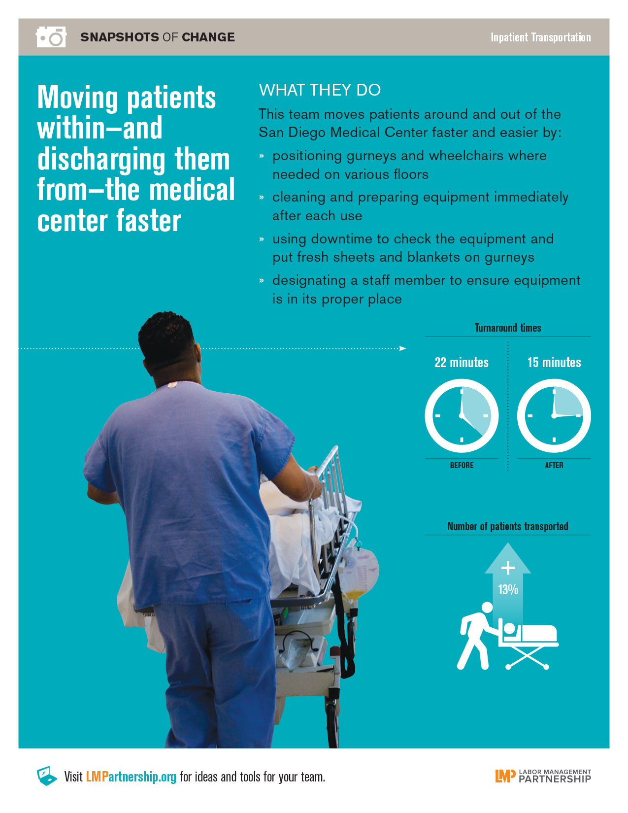 Posted on bulletin boards, in break rooms and other staff areas, this poster highlights a transport team that improved turnaround times.