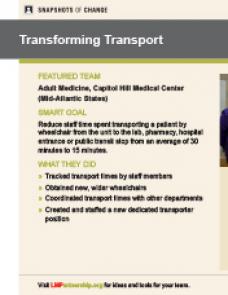 This PowerPoint slide features a Mid-Atlantic States team that reduced patient transport times. Use in presentations to show some of the methods used and the measurable results being achieved by unit-based teams across Kaiser Permanente.
