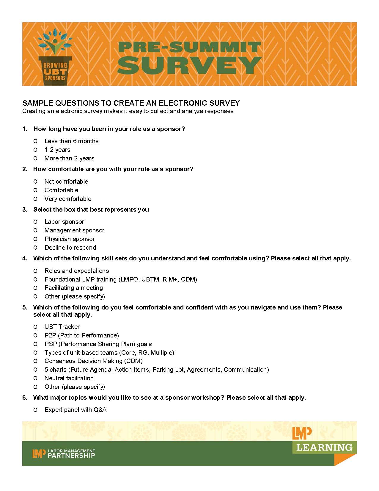 Pre-Summit Survey Questions, UBT Sponsor Summit
