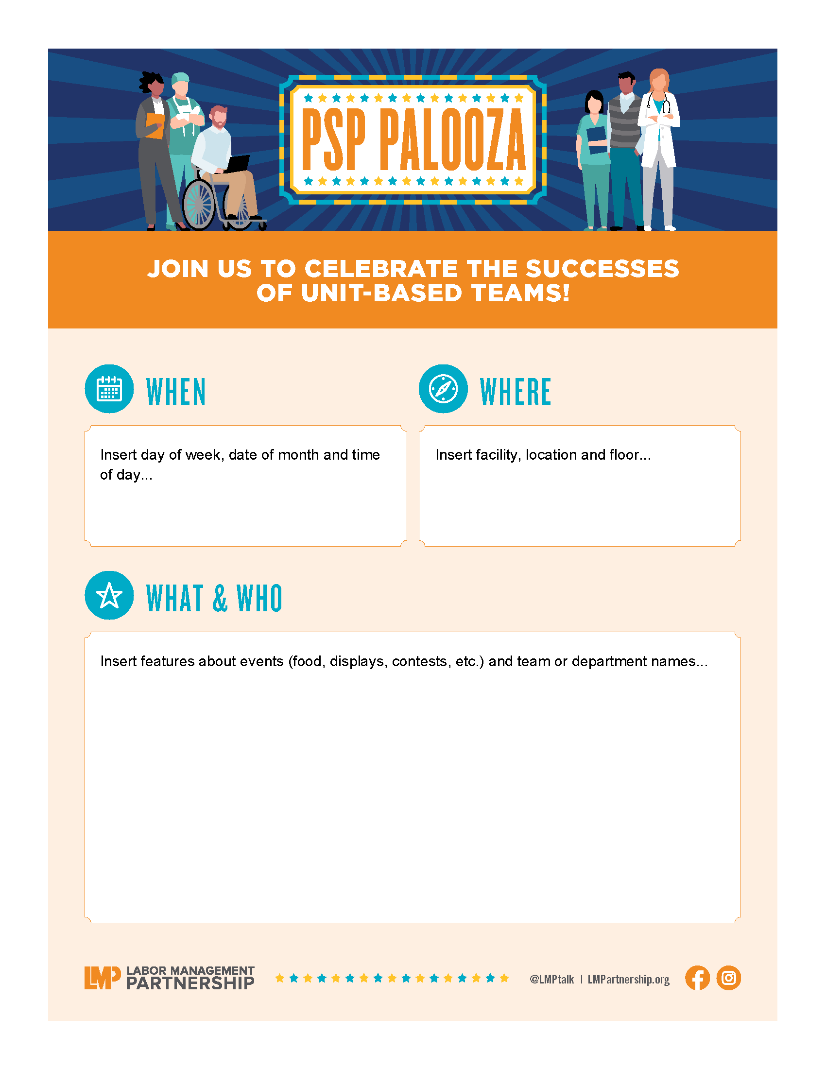 Use this fill-in-the-blanks flier template to promote your PSP Palooza. Post fliers in breakrooms, union halls and other places where frontline workers and managers gather.