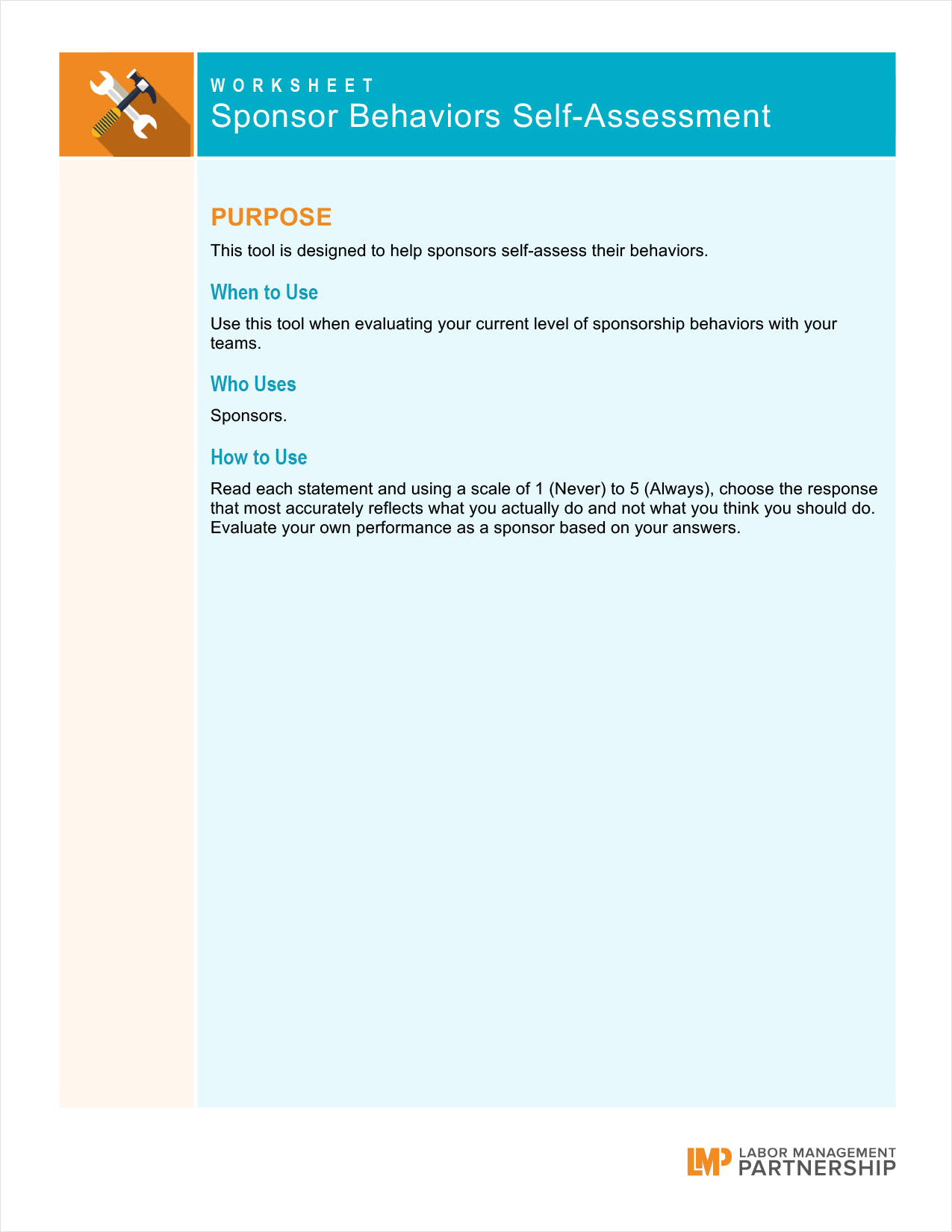 This tool is designed to help sponsors self-assess their behaviors. Use when evaluating your current level of sponsorship behaviors with your teams.