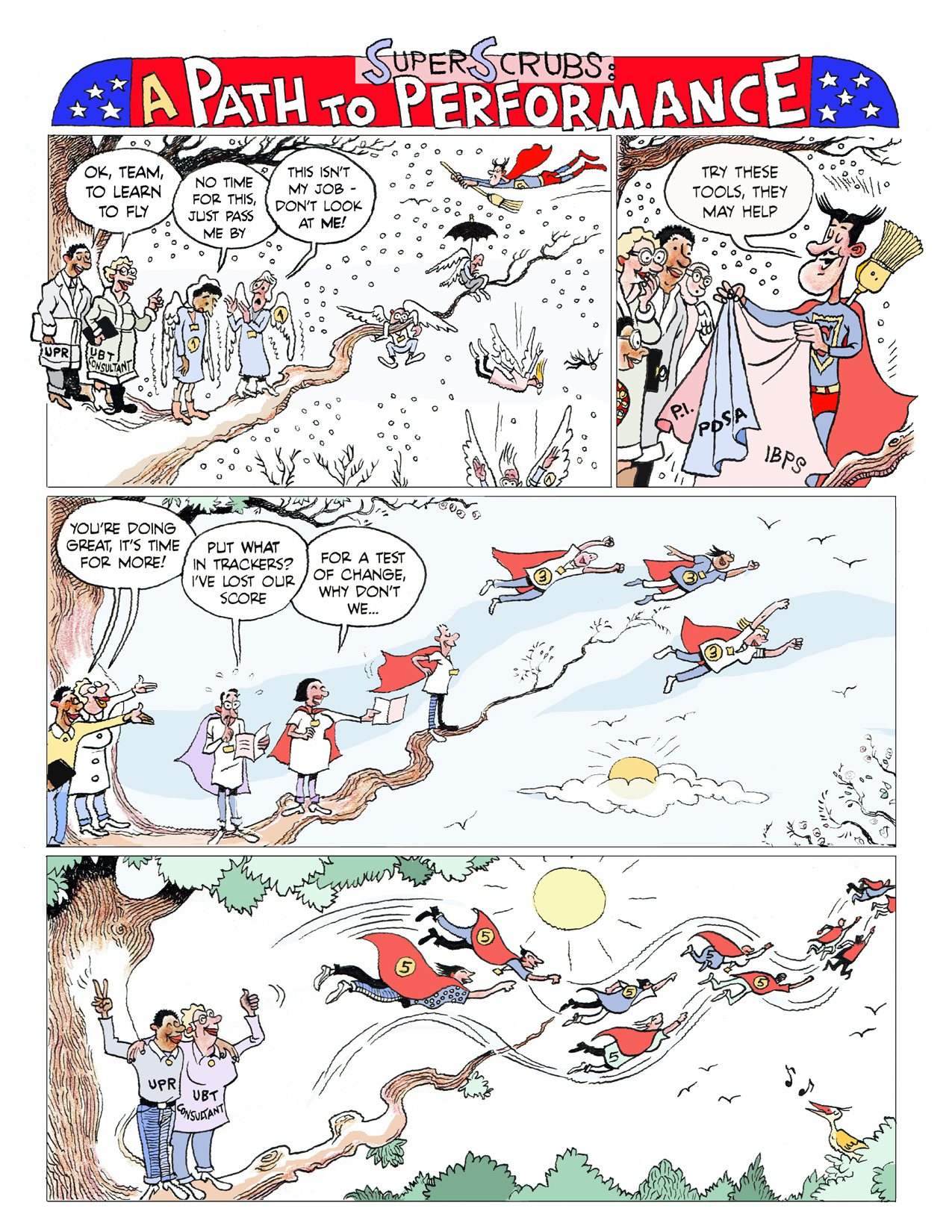 Post this full-page comic on bulletin boards, in break rooms and other staff areas to share tools for UBTs to use on their path to performance.