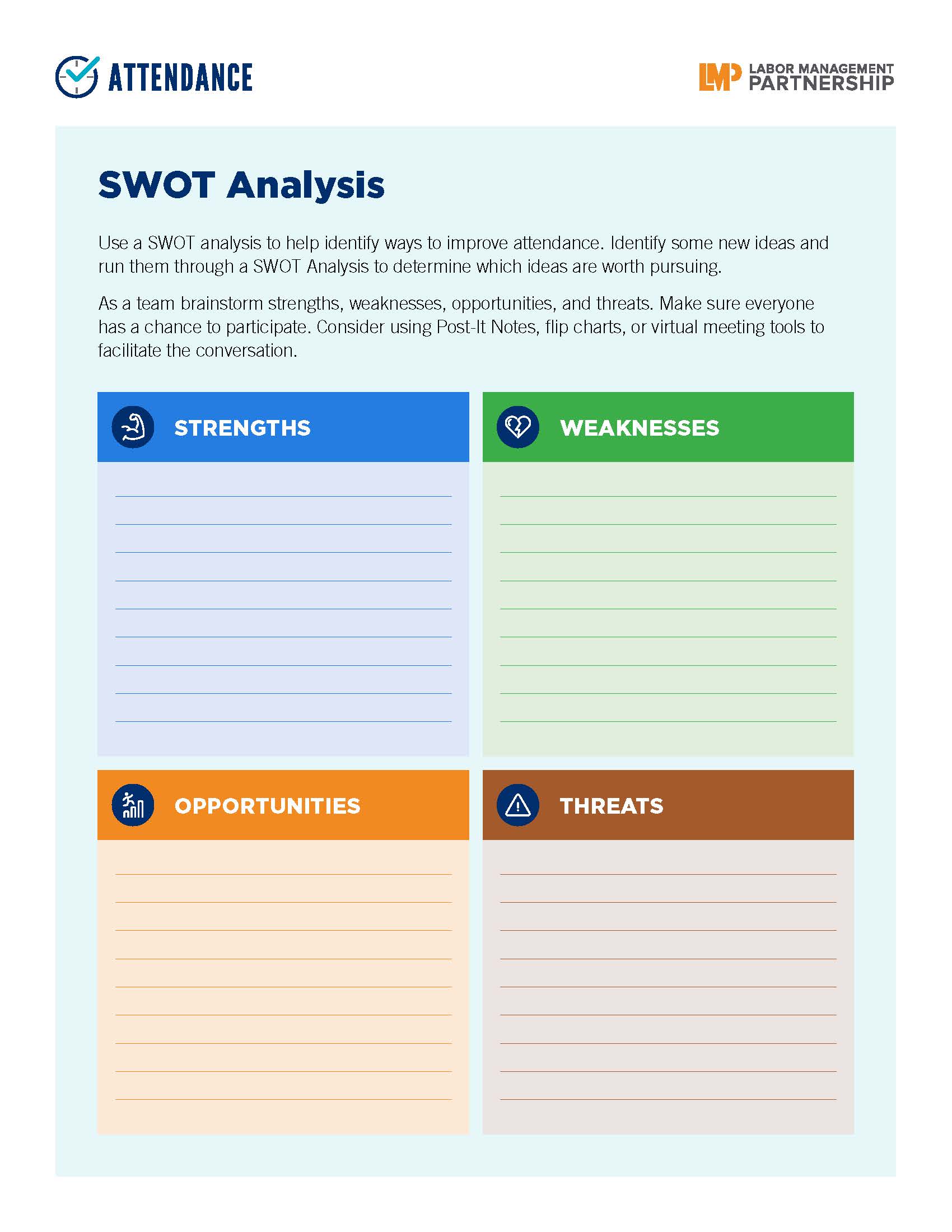 Analyze teams' strengths, weaknesses, threats and opportunities as you plan to improve attendance.