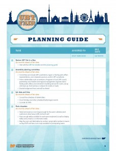 Download and review this detailed guide as the first step in planning a UBT fair at your region or facility. Topics include assembling your committee, setting the date and location that will attract the most people to your event, mobilizing teams and presenters, and ensuring your fair goes off without a hitch. Includes space to write in due dates and names of staff assigned to each task.