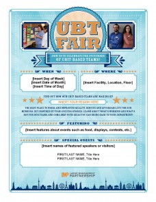 Use this fill-in-the blanks template to promote your UBT fair. Fill out template and download customized poster or flier to hand out at meetings or post on bulletin boards. Add details such as day, time and location and any special guests and activities planned for the fair. Post fliers in breakrooms, union halls and other places where frontline employees gather.