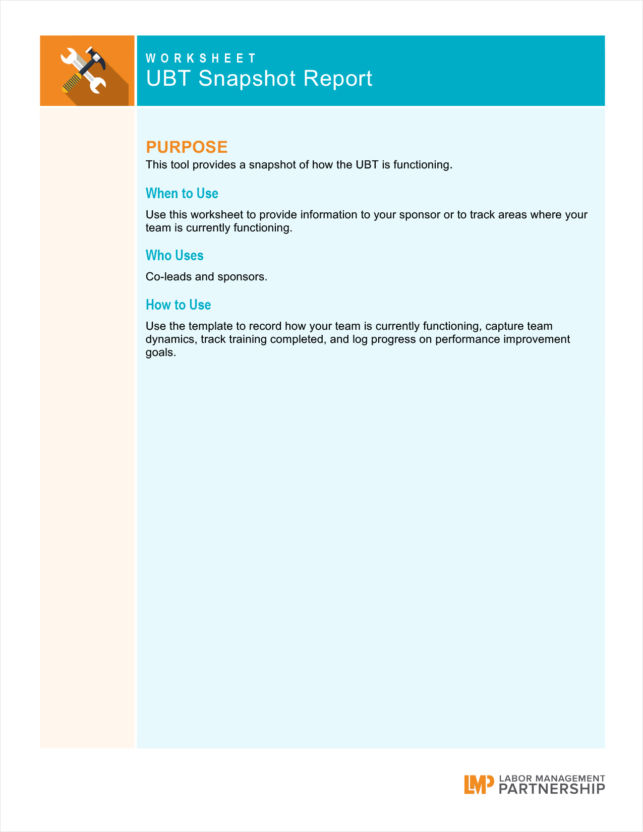 Use this form to provide your sponsors or the team itself with a quick overview of the team's work and how well it is functioning.