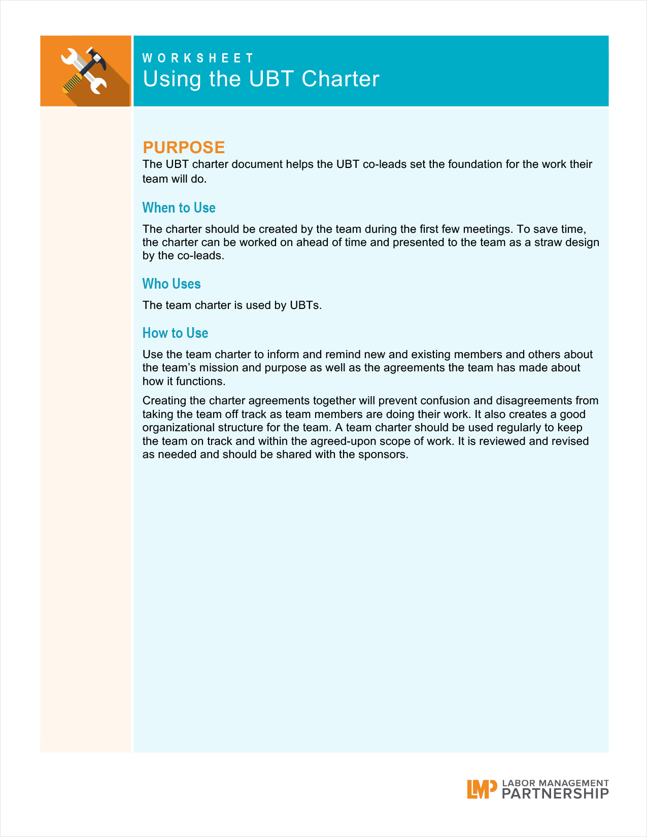 Using the UBT Charter
