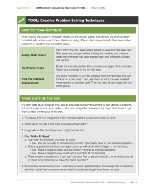 In meetings or as a handout to help teams move past process and get creative to solve problems.